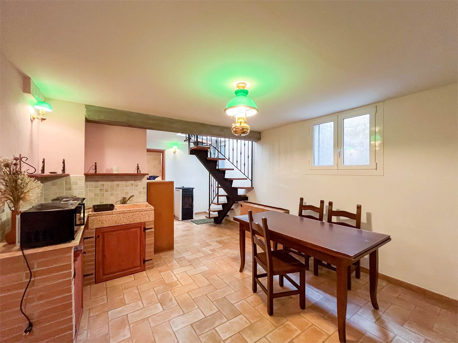 cantina collegata internamente, completa di secondo bagno e lavanderia.