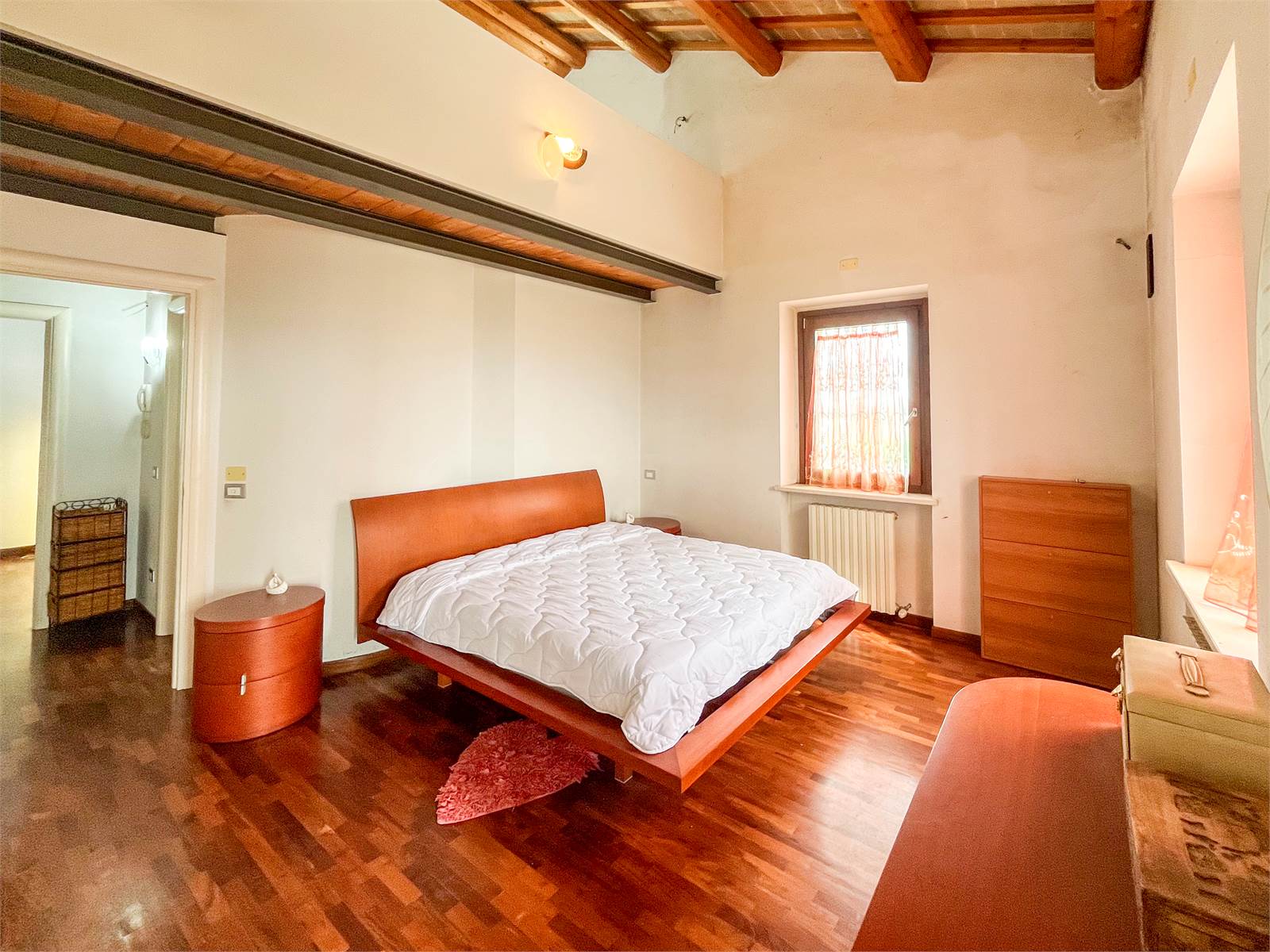 Zona notte: Il piano superiore accoglie un disimpegno, due ampie camere matrimoniali, un bagno con vasca e doccia e un soppalco. Una delle camere gode di balcone panoramico con vista sulle colline marchigiane.