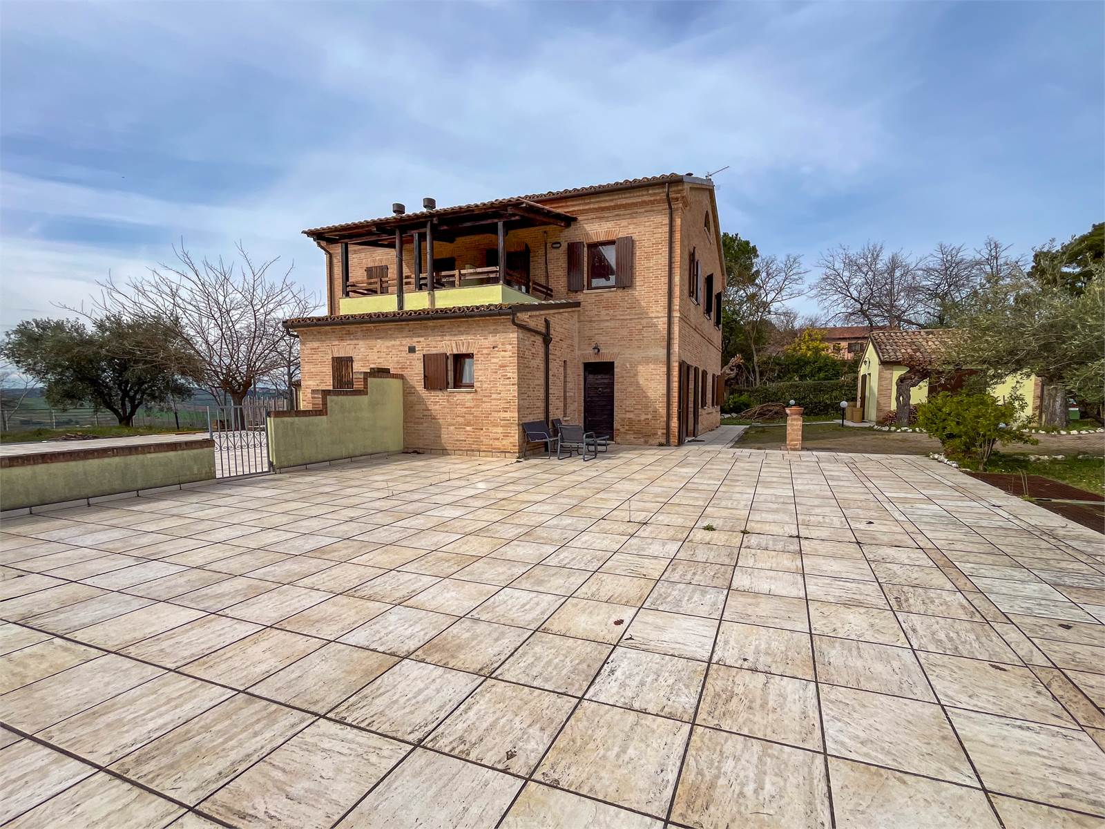 Una terrazza pavimentata all'ingresso;