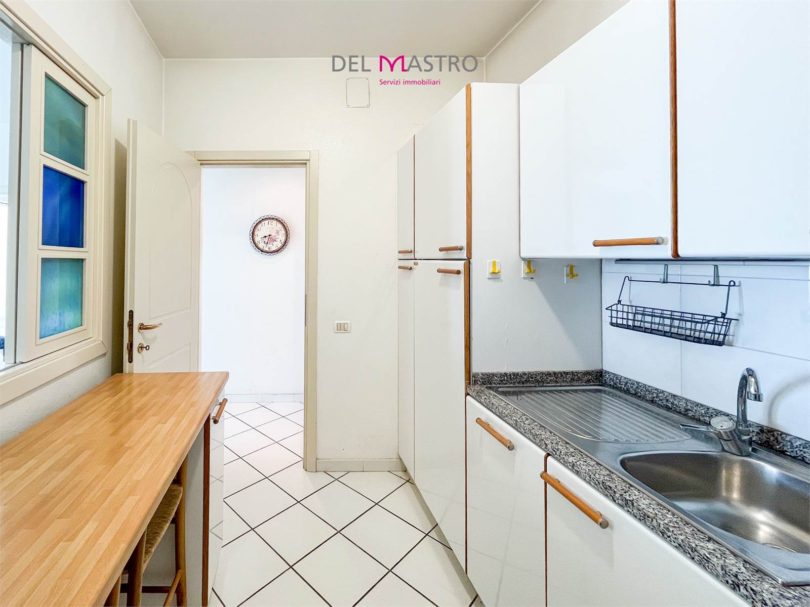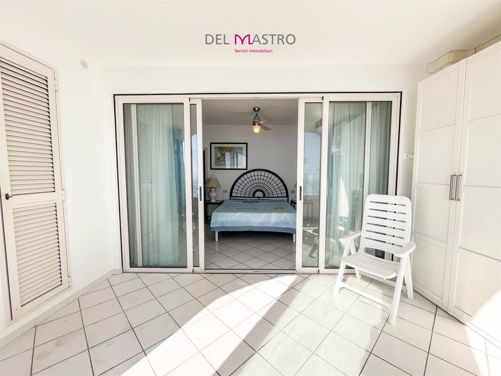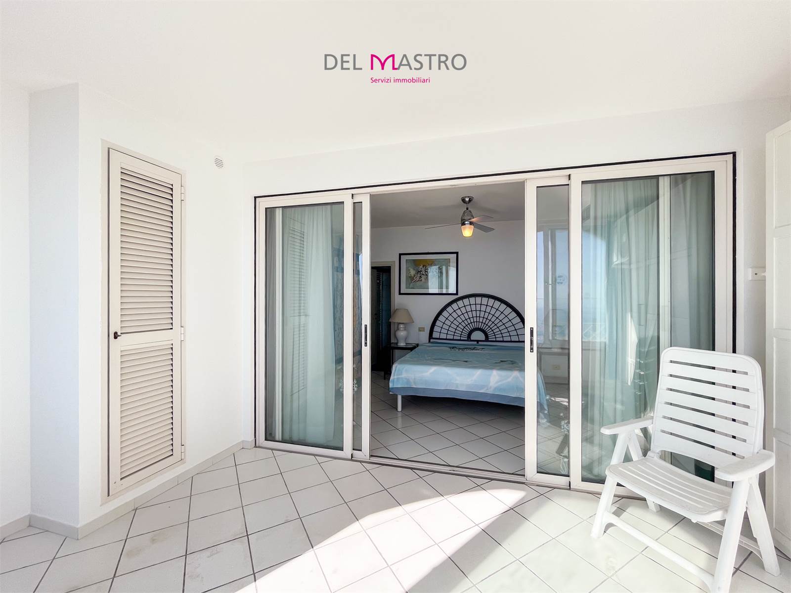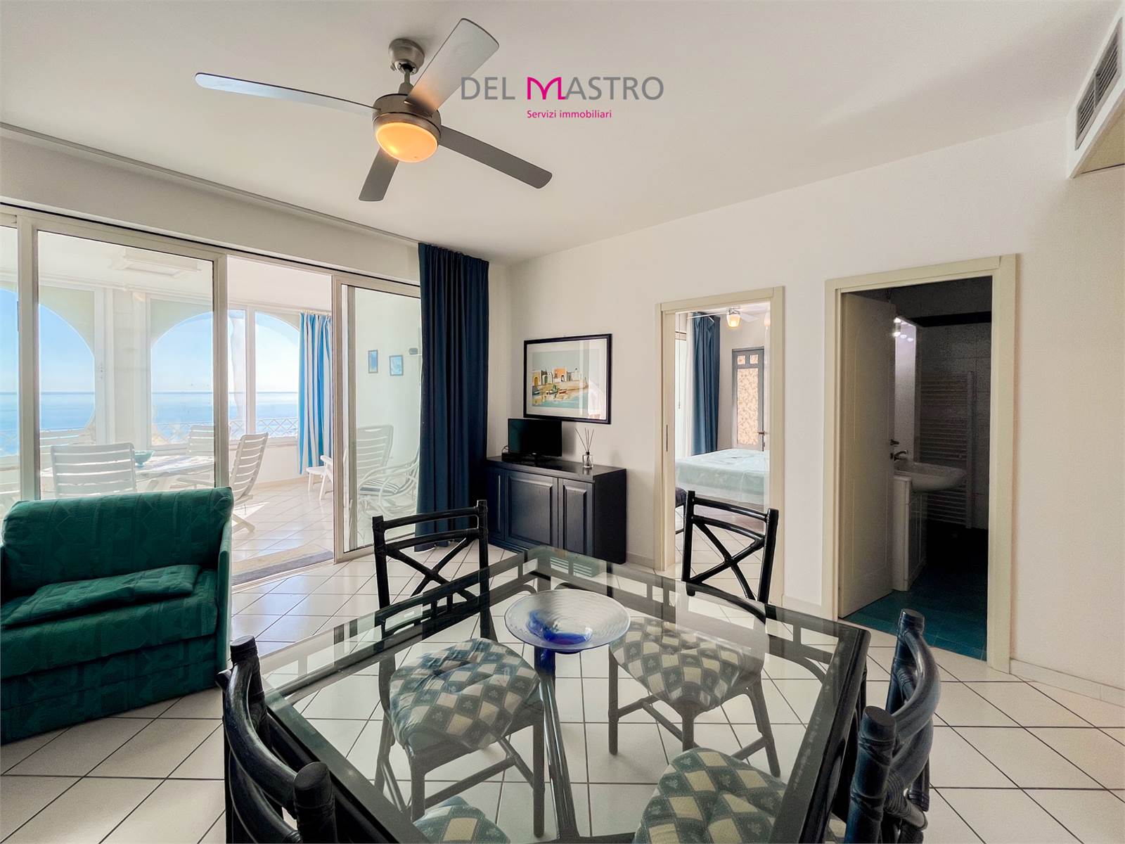 L’ingresso conduce alla zona giorno con cucina e living, valorizzata da un ampio terrazzo verandato con affaccio sul mare, perfetto da vivere in ogni stagione.