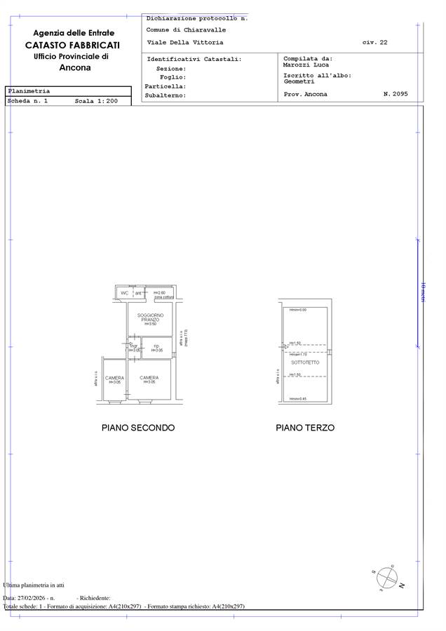 In posizione centrale e servita, proponiamo appartamento posto al piano secondo, con soffitta al piano terzo, per una superficie catastale complessiva di 65 mq.