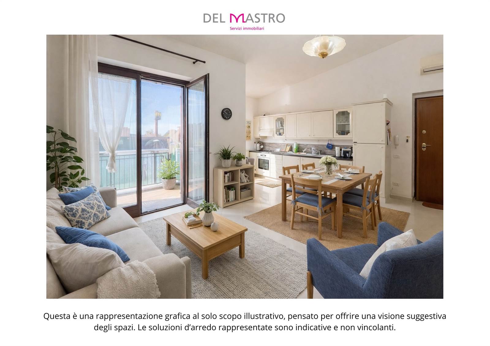 Gli spazi sono ben distribuiti e pensati per una gestione pratica della vita quotidiana, con due balconi che garantiscono luminosità e sfoghi esterni.